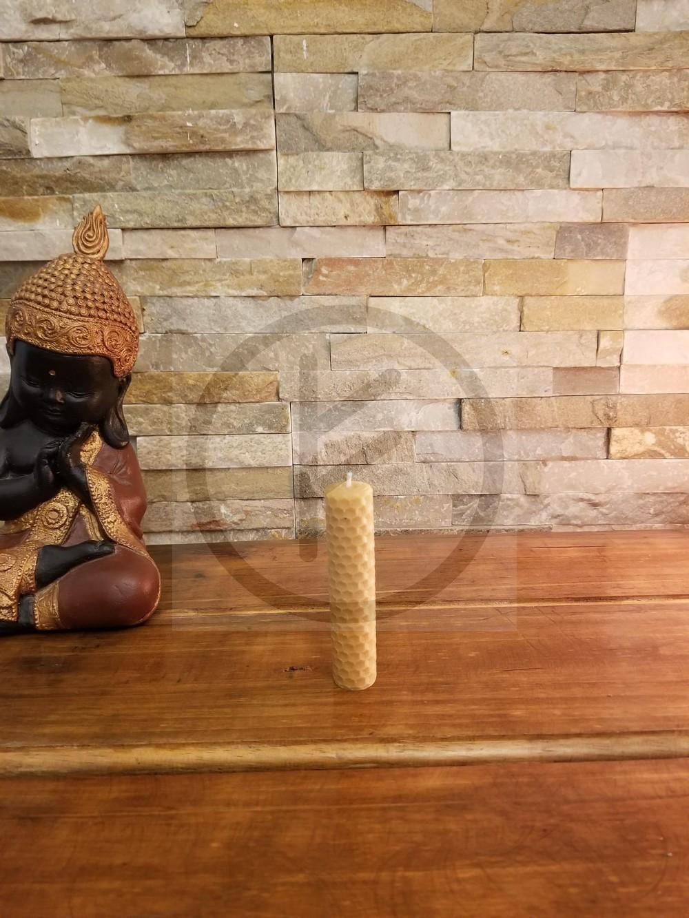 Velas de miel de 10cm de alto y 2cm de diámetro hecho con panal de cera de abeja 100% natural y sin impurezas, pabilo tratado para evitar que ahúmen y packaging adecuado para mantener el producto en condiciones para su venta.
